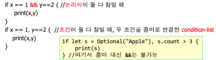Swift에서는 실행문이 하나라도 있다면 {} 사용