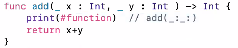 이런 함수의 경우 자료형은 (UITableView,Int) -> Int, 함수 이름은 tableView(_:numberOfRowsInSection)이 된다.