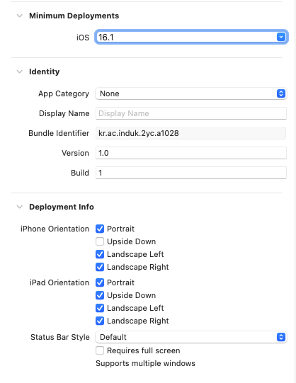 iOS 7th Class 이유찬(Chan YiYu) 28 10월 2025 • 2 min read minimum deployments최소 배포 iOS 버전deployment info(배포)Orientation(화면 방향)portrait(세로)landscape(가로)자동 레이아웃 에러(무시)번호를 누르면 나오는 중단점만약 끌어다 놓은 아웃렛을 변수명 변경으로 하려면 생기는 문제.Initial ViewController 설정해야 처음 화면이 제대로 나옴