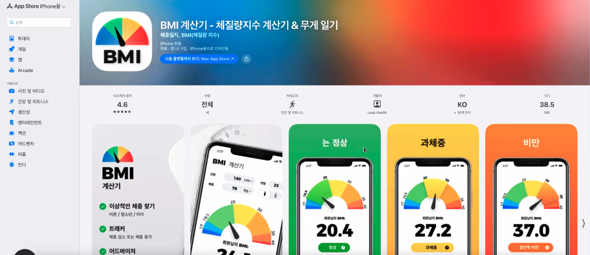 | ๐จ ์๊ฐํ | BMI ๊ฒฐ๊ณผ ์์ ํ์ | BMI ๋ฒ์์ ๋ฐ๋ผ ๋ผ๋ฒจ ์์ ๋ณ๊ฒฝ (์: ์ ์=์ด๋ก, ๊ณผ์ฒด์ค=์ฃผํฉ) |
