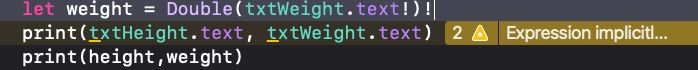 print("BMI:\(shortenedBmi), ํ์ :\(body)")