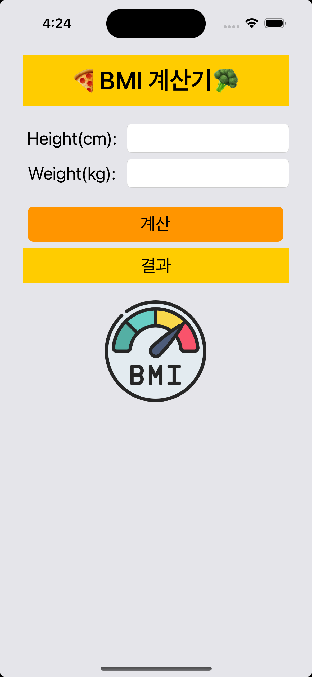 โถ 1. ๋ฉ์ธ ํ๋ฉด โ BMI ๊ณ์ฐ๊ธฐ