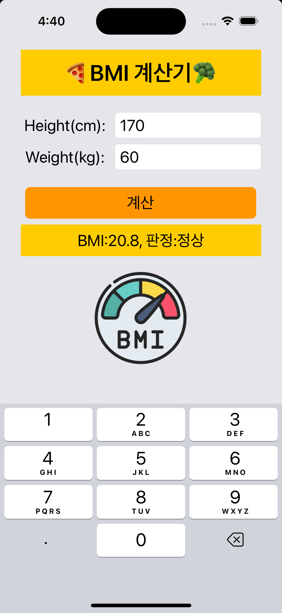 - UILabel: โ๋์ BMI ๊ณ์ฐ๊ธฐโ